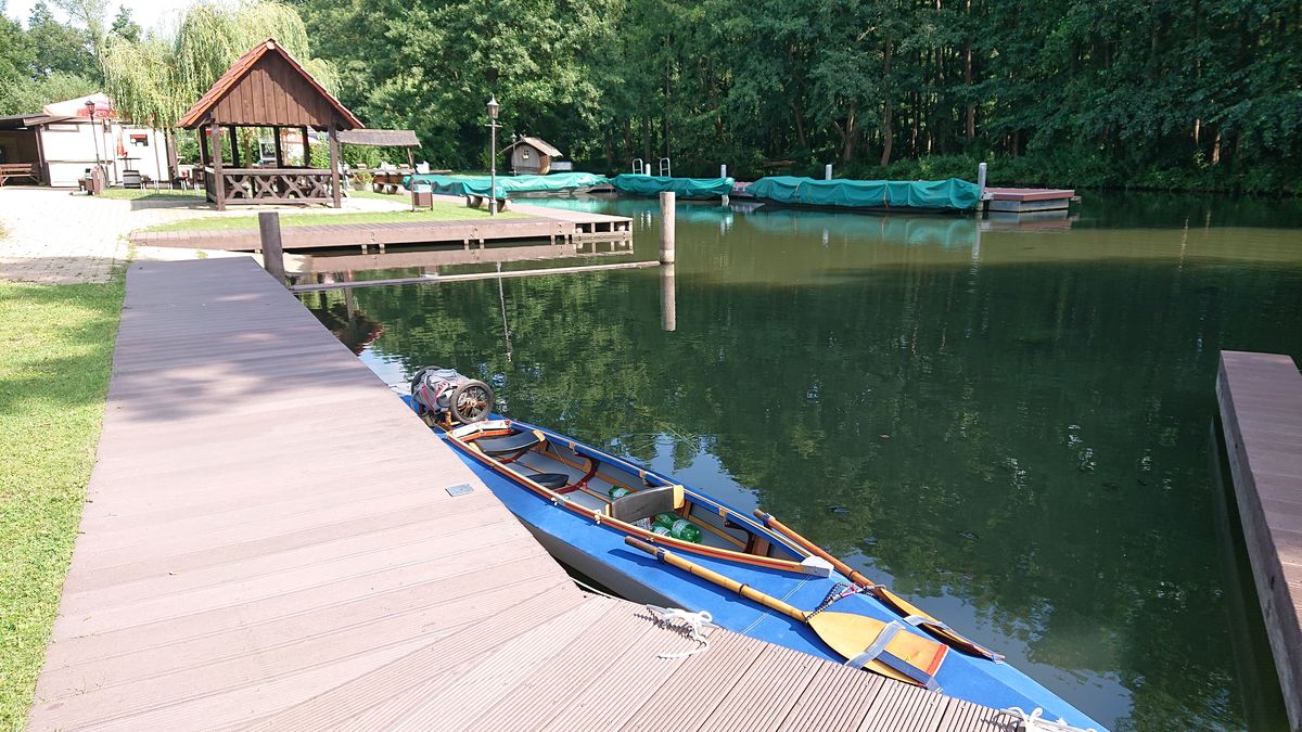In Schlepzig kann im großen Hafen die erste Nacht verbracht werden. Preis für Zelt und Person sind günstig und WC ist für die Nacht vorhanden.